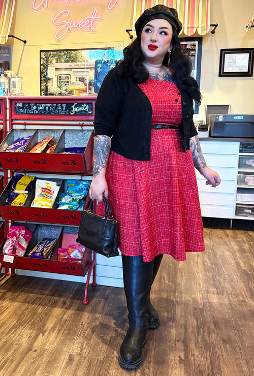 Meet The Jane Cardigan, our cheeky little nod to the iconic sweater girls of the '50s, with a wink to the bombshell herself, Jane Russell. This cropped, button-up cardigan is soft, flirty, and made to play nice with your favorite dresses. Whether you're channeling retro glam or just need a lil' extra layer of coziness, the Jane hugs just right and adds a touch of vintage sass to any look. Go ahead, give 'em something to talk about!