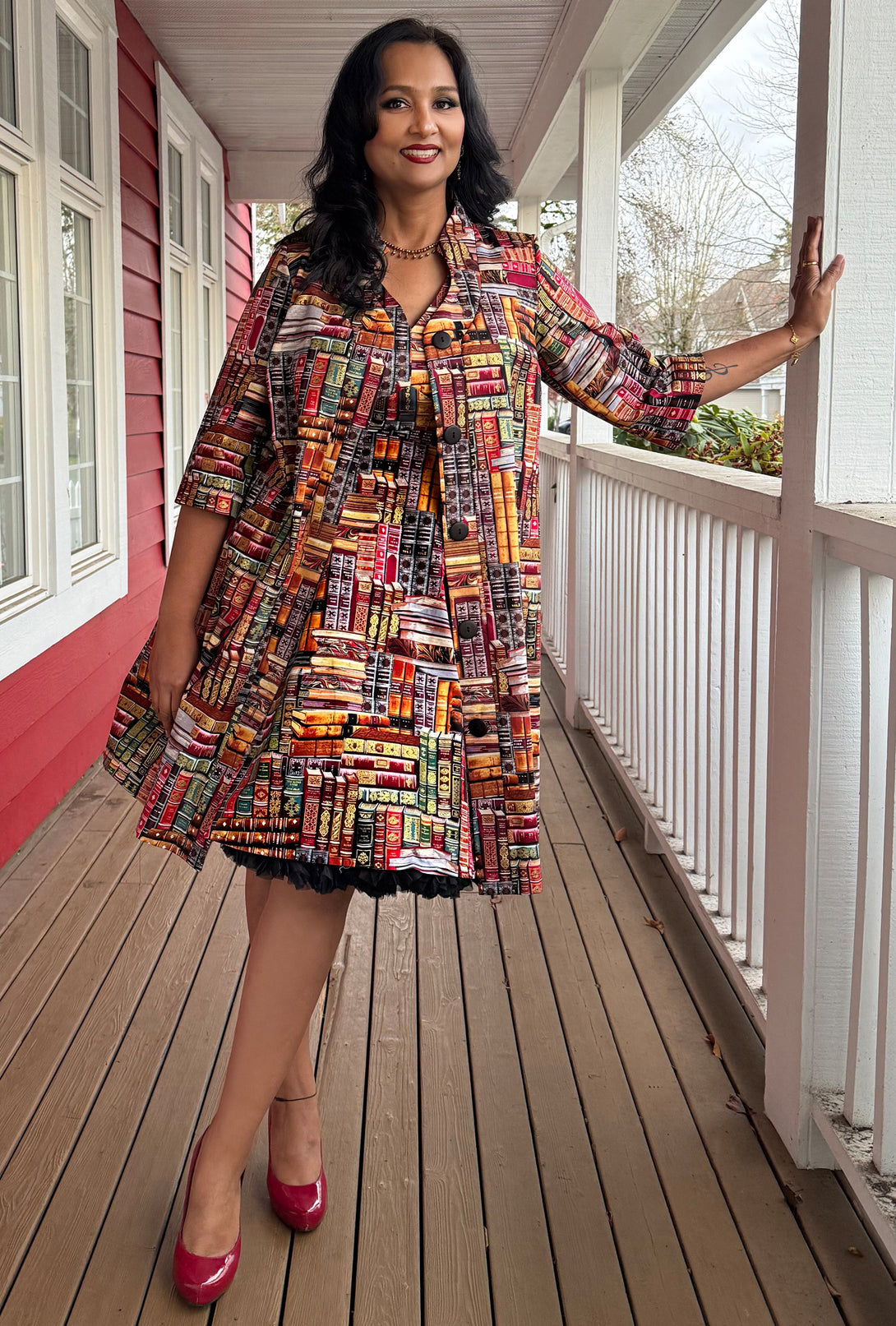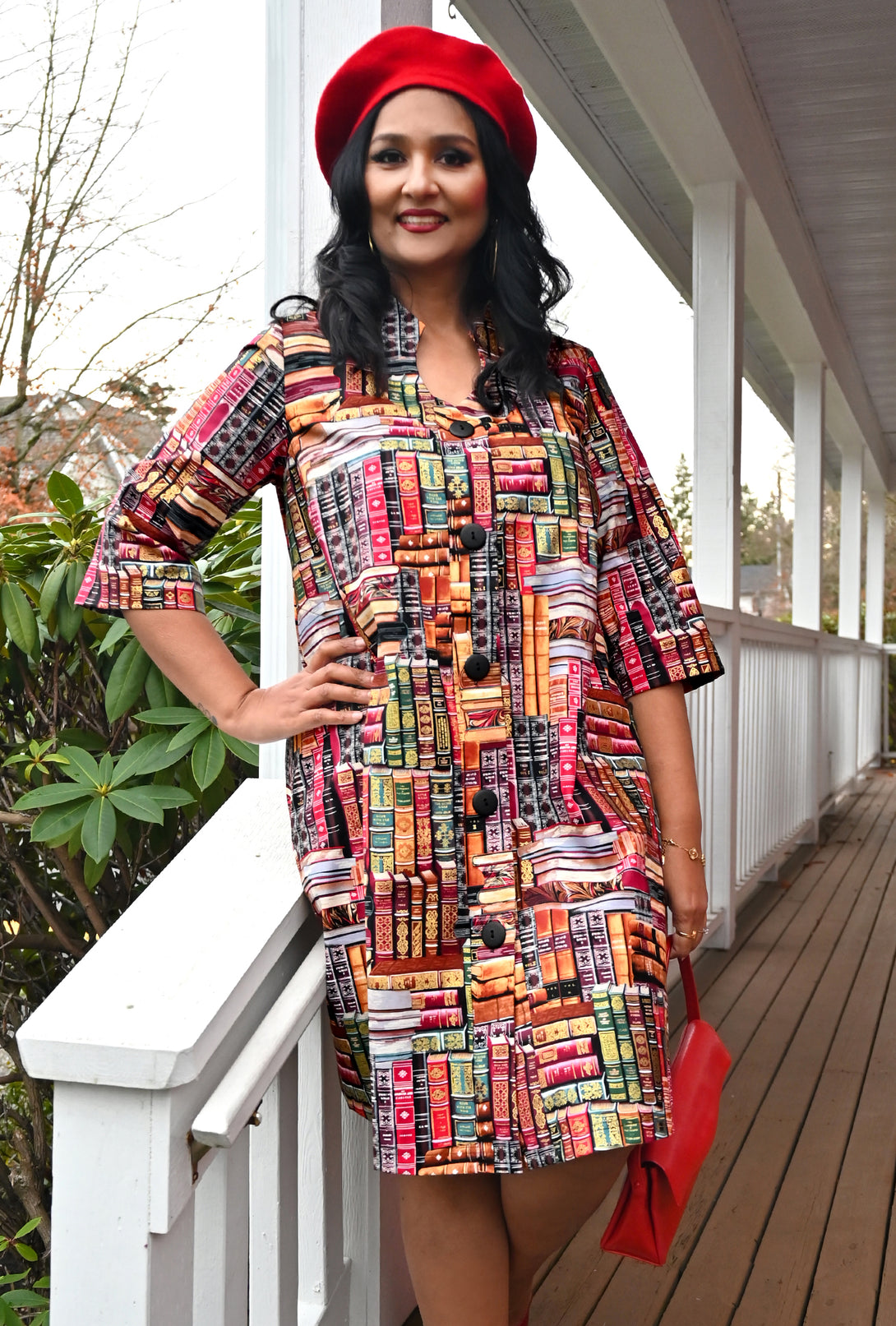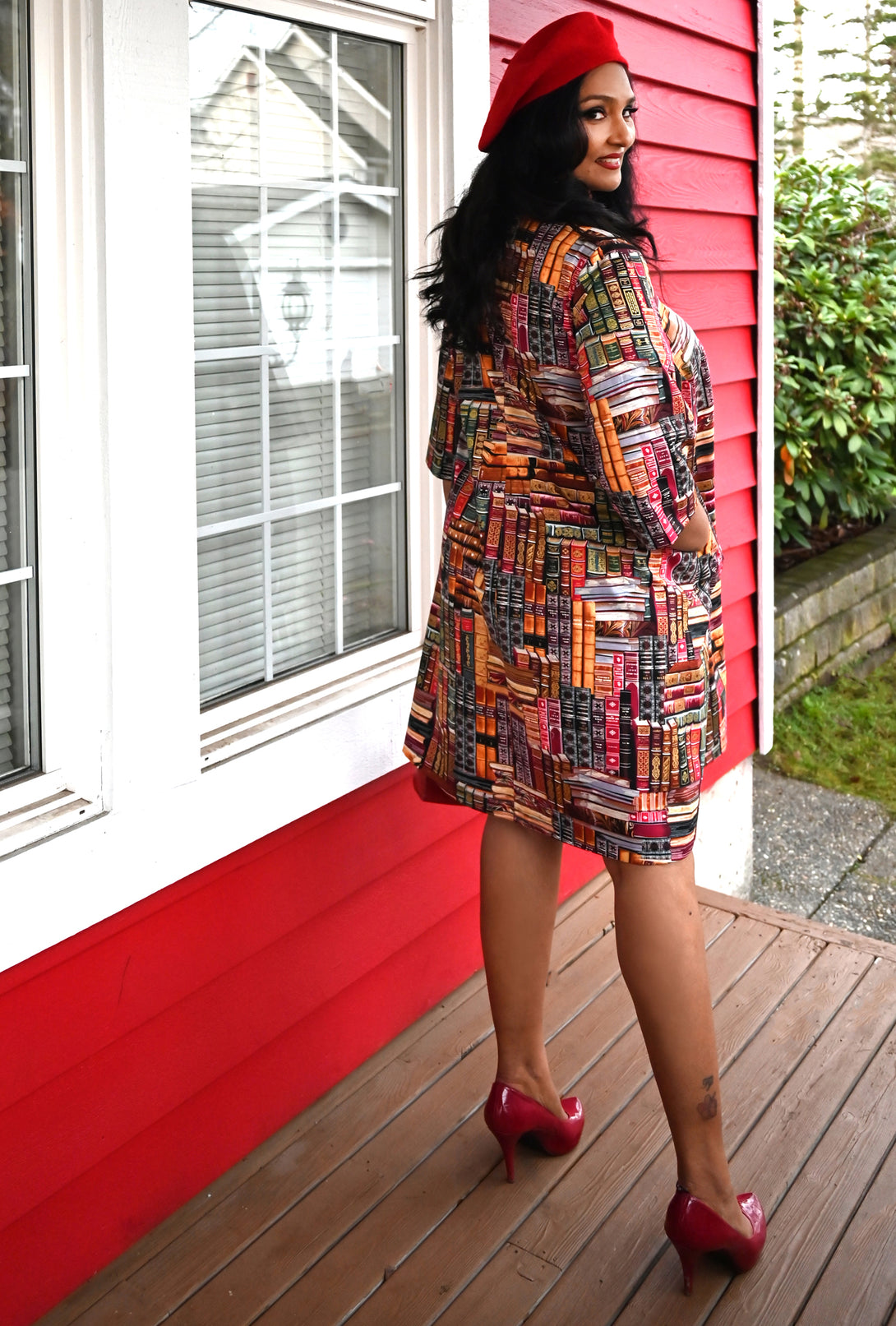 Show off your literary flair! This Page Turner Coat Dress is your ticket to a mid-century moment with each detail crafted for book lovers who swoon over retro style fashion.