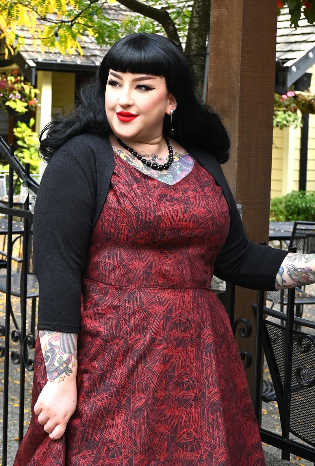 Add a dash of darling to your outfit. Now you can cover your arms without covering up your dress. Super soft and stretchy, the Sophia Shrug is a sleek bolero sweater with three-quarter length sleeves. It sits above your natural waist which is perfect to show off your Cherry Velvet dress.