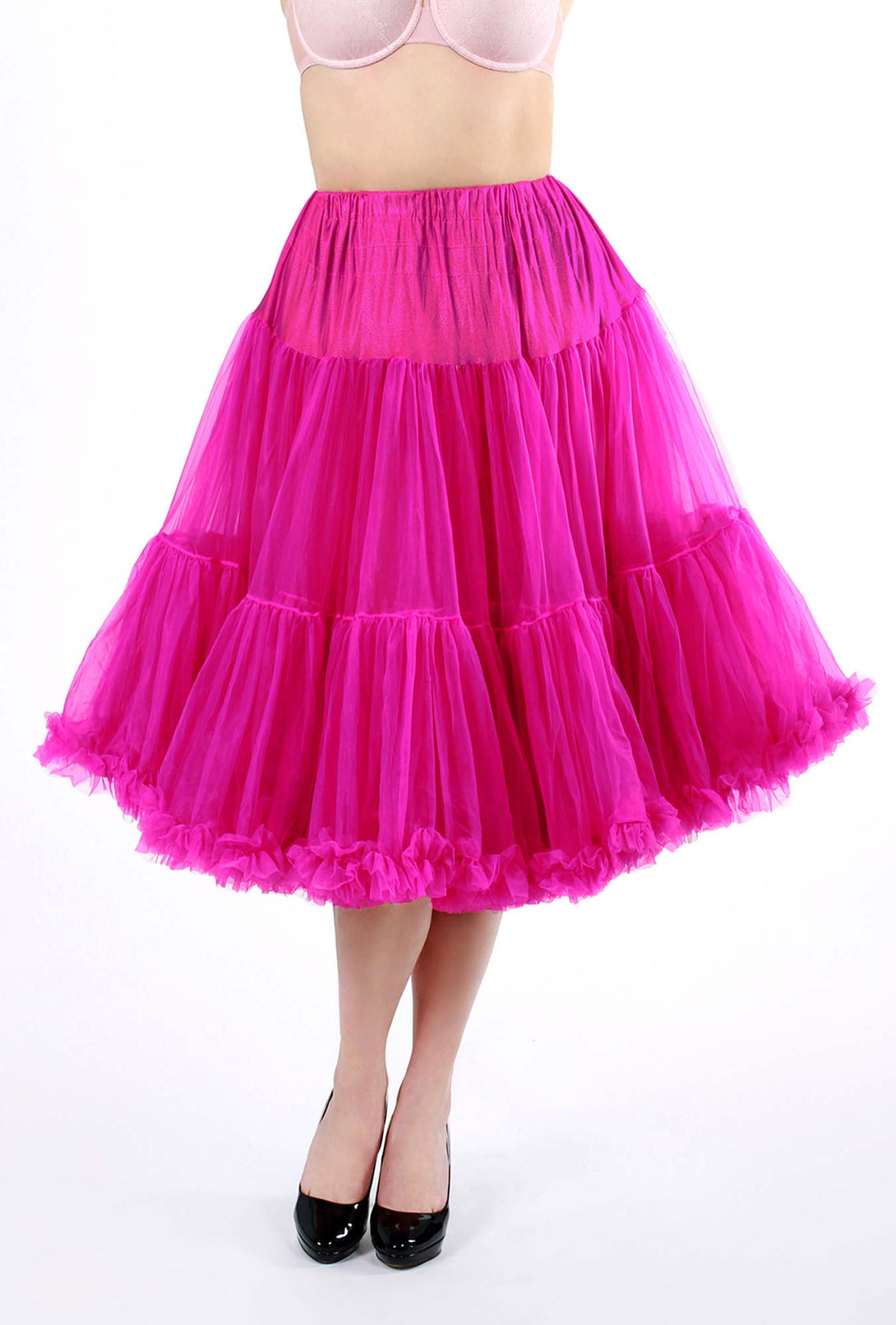 This 1950’s style secret gives you a full skirt and the appearance of a slimmer waistline. Vintage vixens and swing dancers everywhere will adore the flirty, full-skirted effect of adding this crinoline with a ruched ruffle that peeks out below the skirt. These are so gorgeous you may need one in every colour! Put on your favourite dancing shoes and give us a twirl!!